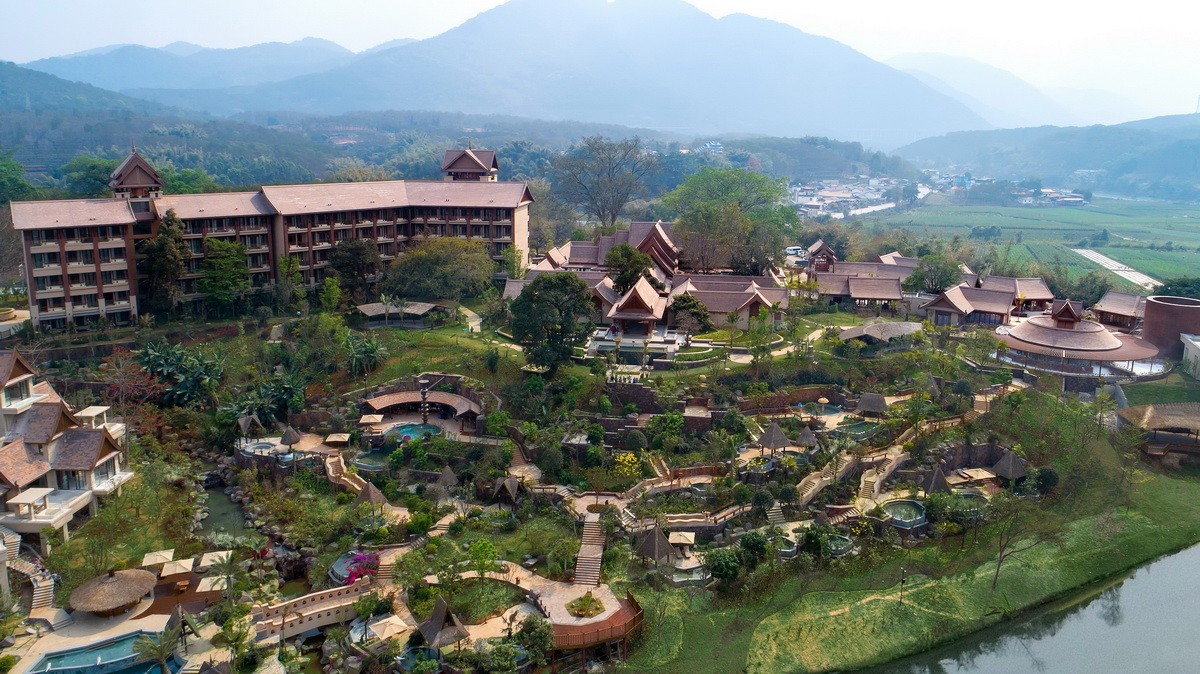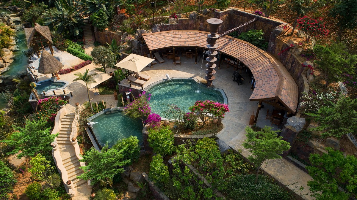 2020年12月,我司設(shè)計、施工的華江翡華金科溫泉度假酒店開業(yè)。酒店憑借其天然資源優(yōu)勢,打造全新的溫泉體驗,室外23個功能各異的露天溫泉池,讓賓客身處山水自然懷抱之中,與自然親密接觸,體驗身、心、靈的全面放松。酒店溫泉水富含偏硅酸,偏硅酸型溫泉屬世界罕見稀缺溫泉,含有大量對人體有益的微量元素,水質(zhì)溫和、色味較淡,是當?shù)貫閿?shù)不多的可浴、可養(yǎng)、可飲的溫泉之一。